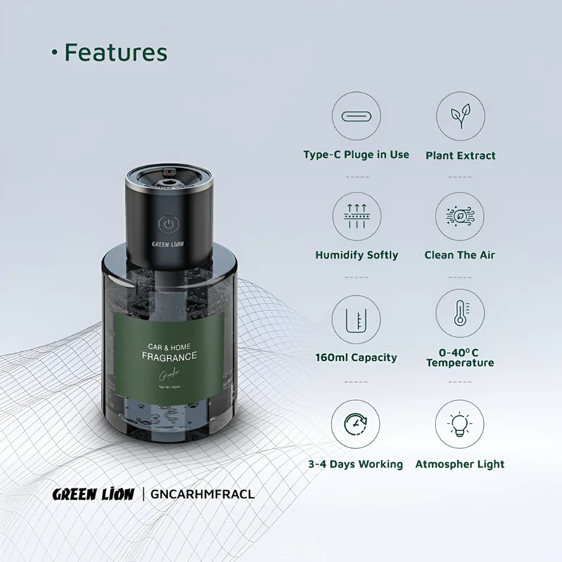 دستگاه بخور ساز و خوشبو کننده گرین لاین مدلGreen Lion Car And Home Fragrance 160mil جنس اصلی