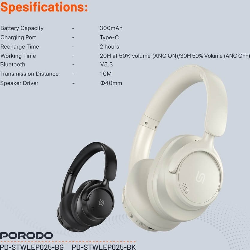 زمان کار - 20 ساعت (با صدای 50٪، ANC روشن)، 30 ساعت (با صدای 50٪، ANC خاموش) - درایور بلندگو - Φ40 میلیمتر